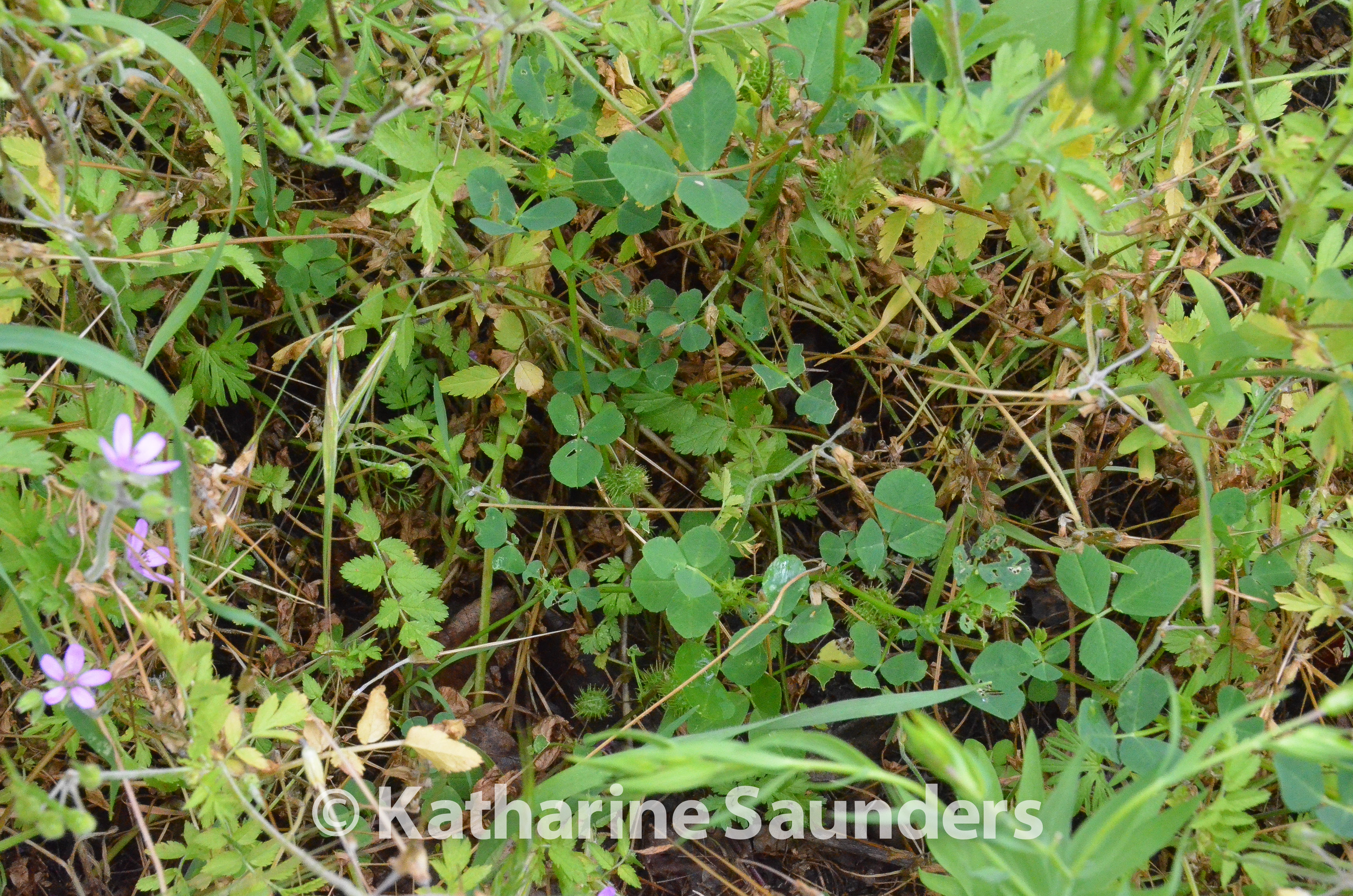Although they’re easy to pull, I recommend taking great care because they’ll drop the burs with any light tug.  Follow the branches down to the soil level, to pull the root directly – one root usually connects to many branches.  Because bur clover hides under other plants, you’ll need to pull it up gently, so none of the burs fall off into the soil.